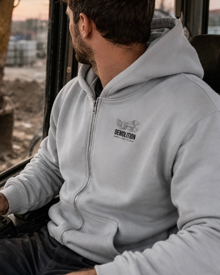 Dieser Zipper in Hellgrau ist Teil unserer exklusiven DEMOLITION Kollektion. Fluffy Boxcut Zipper extra warm.
