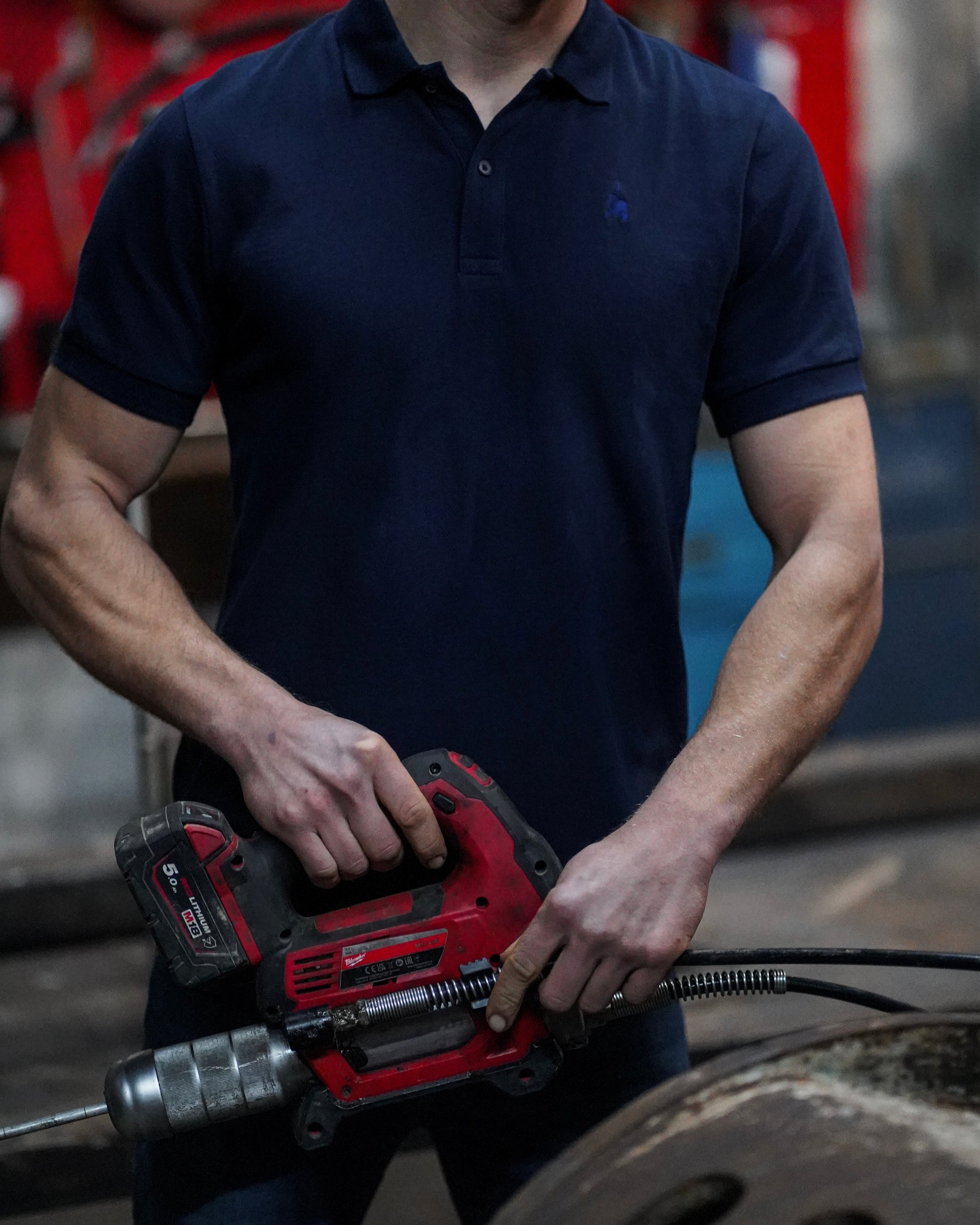 Dieses HYDRLC Polo Shirt in Navy Blue ist Teil unserer exklusiven GROUNDWORK Kollektion. Auf der linken Brustseite befindet sich ein Sticklogo in Form eines Baggers.